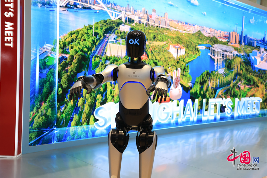正在第八届进博会从场馆地方广场上海馆,一位特殊的导览员——来自智元科技的机械人“小智”正正在驱逐不雅众。中国网记者 伦晓璇 摄