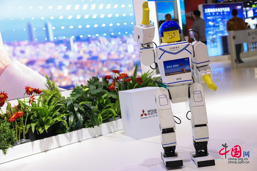 正在三菱电机展区,Lumos鹿小明机械人正正在取不雅众打招待。这是专为儿童打制的AI人形伴童机械人,以86cm儿童等身高度、15kg轻量机体,连系萌趣积木制型外不雅设想,搭载强大的AI内核和杰出的交互能力。中国网记者 伦晓璇 摄
